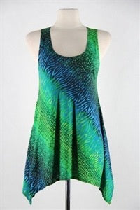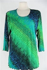 Jostar 3/4 sleeve lettuce top - green tie dye print - polyester/spandex