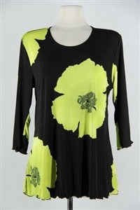 Jostar 3/4 sleeve Top with Lettuce Finish Big Red Flower - Polyester/Spandex