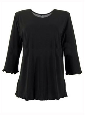 Jostar 3/4 Sleeve Top with Lettuce Finish - Black - Polyester/Spandex