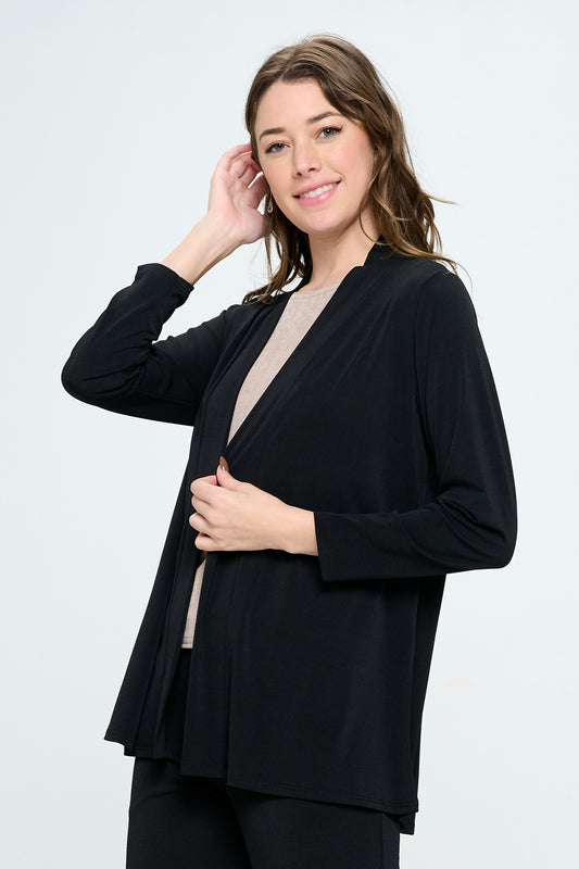 Moss Crepe Long Sleeve Cardigan with Wide Leg Angle Pants-LRS1-K