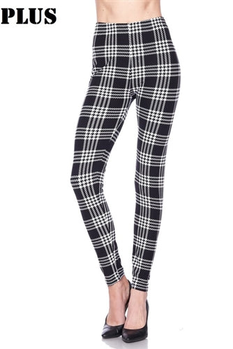 Leggings - plus size - black/white plaid