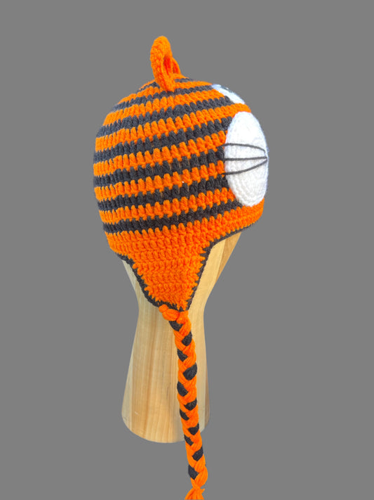 Tiger Face Striped Knitted Beanie Adult Size