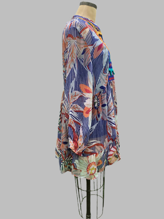 Soft Surroundings Tory Tunic Multi Floral Stripe NWT
